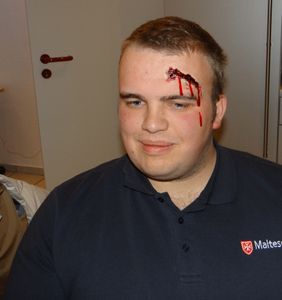 Und wie authentisch eine geschminkte Wunde doch wirkt, davon konnte sich der Besuch gleich vor Ort überzeugen und stellte überzeugend fest dass jede Unterstützung im Lernen und Anwenden des Erlernten für die ehrenamtlichen Kräfte eine wichtige Stütze ist, um im Notfall richtig zu handeln. „Wir freuen uns zudem mit unserem Filialpreis, der mit 1.000,- € notiert ist, einen Verein in unserer Stadt auszeichnen zu können“, so Scheuer weiter.