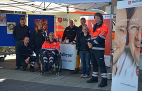 Rheine. Im Rahmen der „Woche der Reanimation“ machten am vergangenen Samstag die Malteser in Rheine die Bevölkerung auf das Thema des plötzlichen Herzstillstandes aufmerksam. Viele Passanten nutzten die Chance, einmal eine Reanimation unter fachkundiger Anleitung der Ausbilder und Helfer im Rettungsdienst selber durchzuführen. Dabei kamen oft Aussagen wie „ich bin froh hier auf Fehler aufmerksam gemacht worden zu sein“, „mein letzter Erste Hilfe Kurs liegt doch verdammt lange zurück“ oder „ich hoffe dies nie anwenden zu müssen.“ „Dabei kann der plötzliche Herzstillstand jeden treffen – egal ob beim Einkaufen, beim Sport oder beim Feiern“, erzählt Holger Böse, Stadtbeauftragter bei den Maltesern in Rheine. „Und wenn es passiert ist wichtig richtig zu handeln. Denn so steigen die Überlebenschancen des Betroffenen um das Dreifache.“ Parallel nutzten die Malteser die Chance über Ihre Angebote im Bereich der Ausbildung, im Bereich Jugend sowie im Sanitätsdienst / Katastrophenschutz zu informieren und erzählen. „Insgesamt sind wir mit der Präsentation auf dem Borneplatz sehr zufrieden“, resümiert Dennis Steinigeweg, Referent für Presse- und Öffentlichkeitsarbeit. „Die Passanten haben das wichtige Thema der Reanimation gut angenommen und viele Fragen gestellt. Dies zeigt dass dies sensible Thema gut angenommen wurde. Auch wir hoffen auf unseren kommenden Großeinsatz bei der Herbstkirmes dies nicht anwenden zu müssen.“