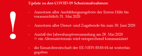 - Aussetzung aller Kursangebote im Bereich der Ersten-Hilfe bis vorraussichtlich 31. Mai 2020